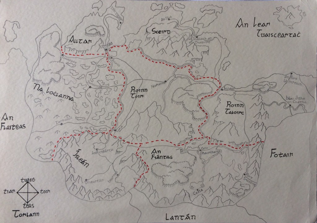 “Is tusa ruire na Lochlann. Is leatsa an cinneadh. Leanfaidh mé thú cibé áit a rachaidh tú…agus is dóigh liom go mbeifeá níos sábháilte má tá mise leatsa!” a dúirt sé agus straois air anois.